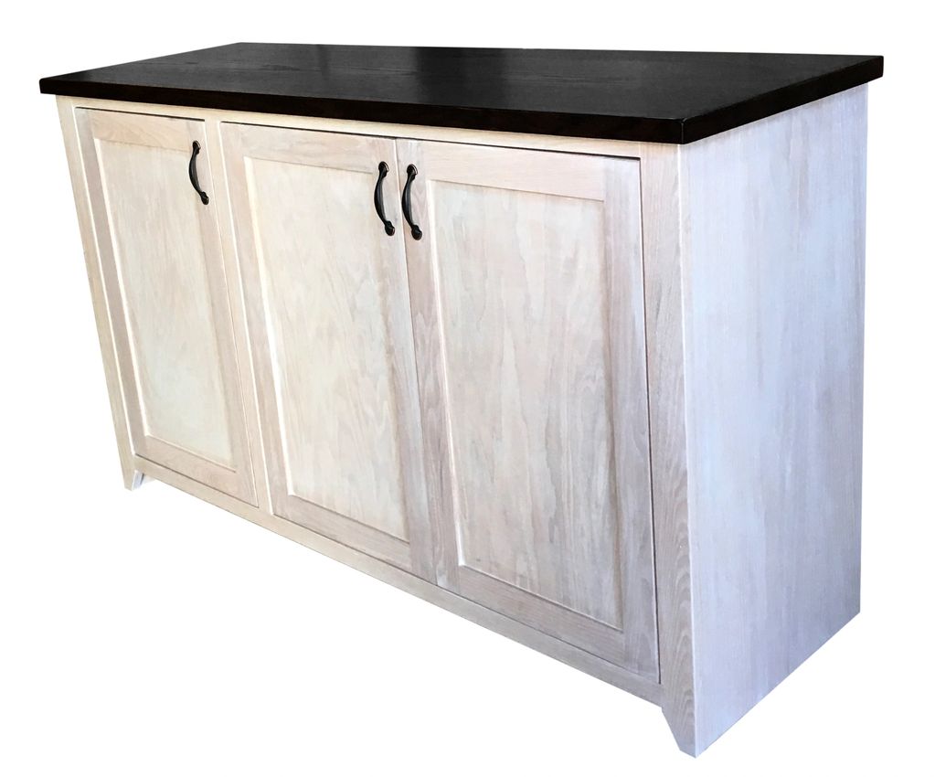 Shaker Style Credenza. Oak Wood with Two-Tone Rich Tobacco White Wash.